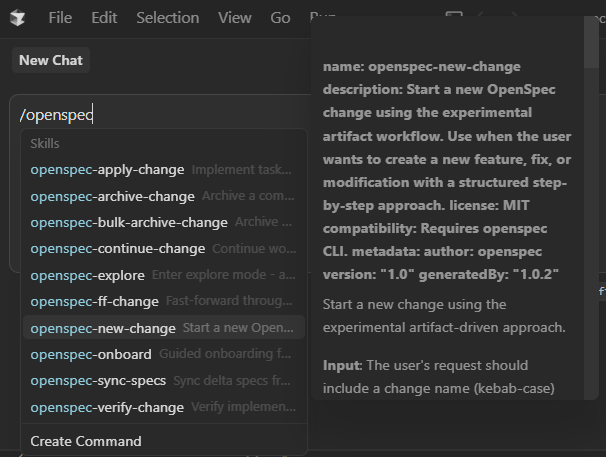OpenSpec Skills in Chat Window